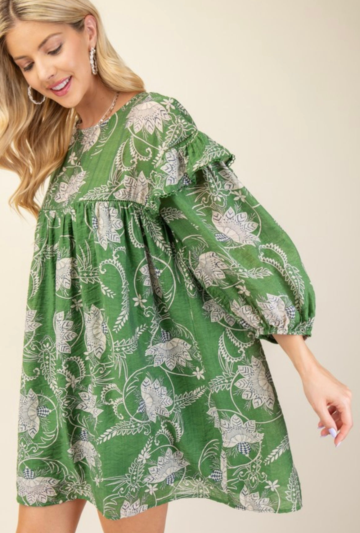 Floral, Ruffles, and Lace crochet details, sign us up! This would be such a cute dress for family portraits!